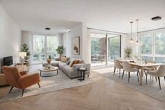 Royale woonkamer (58,8m²) met open keuken en toegang tot overdekt balkon (11,4m²)