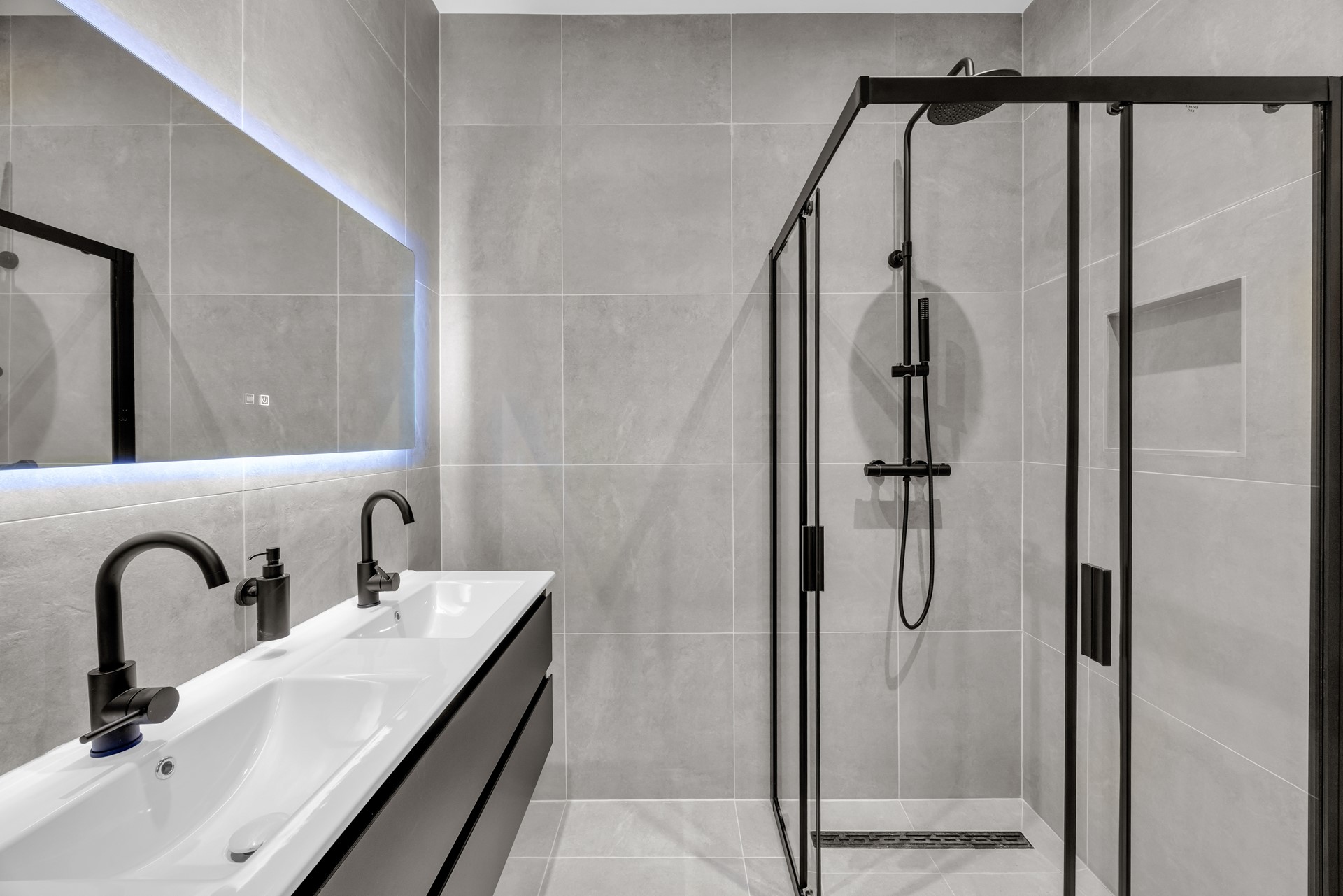 • Voorzieningen badkamer: Inloopdouche, dubbele wastafel met meubel en design radiator