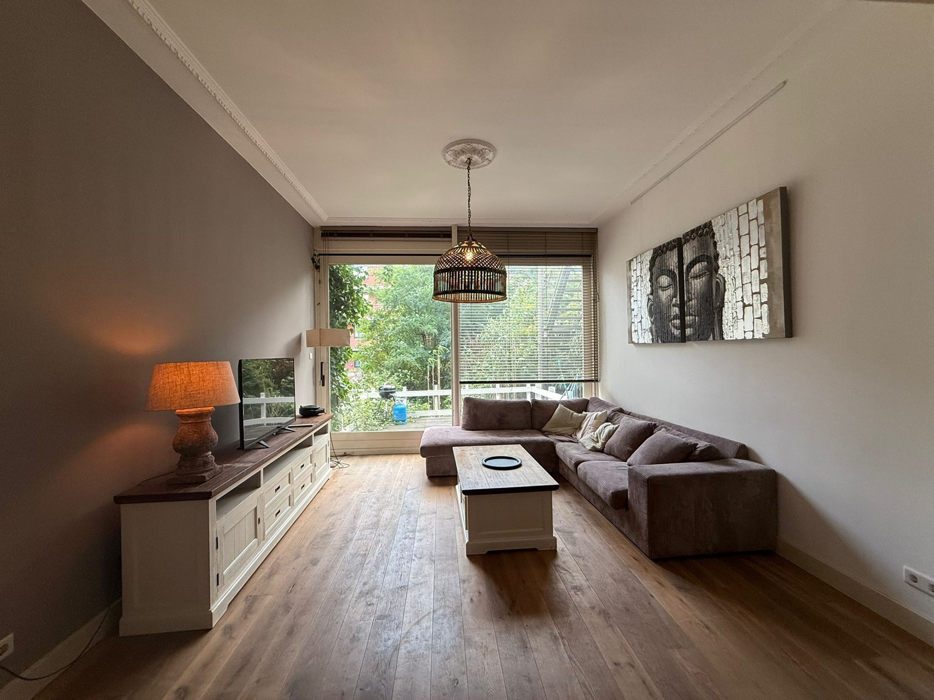 Woonkamer: Royale, lichte woonkamer met grote ramen die zorgen voor veel natuurlijk licht.