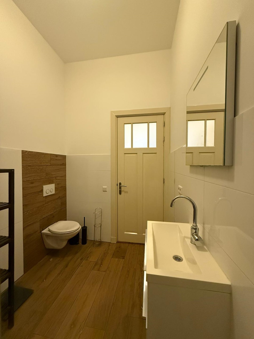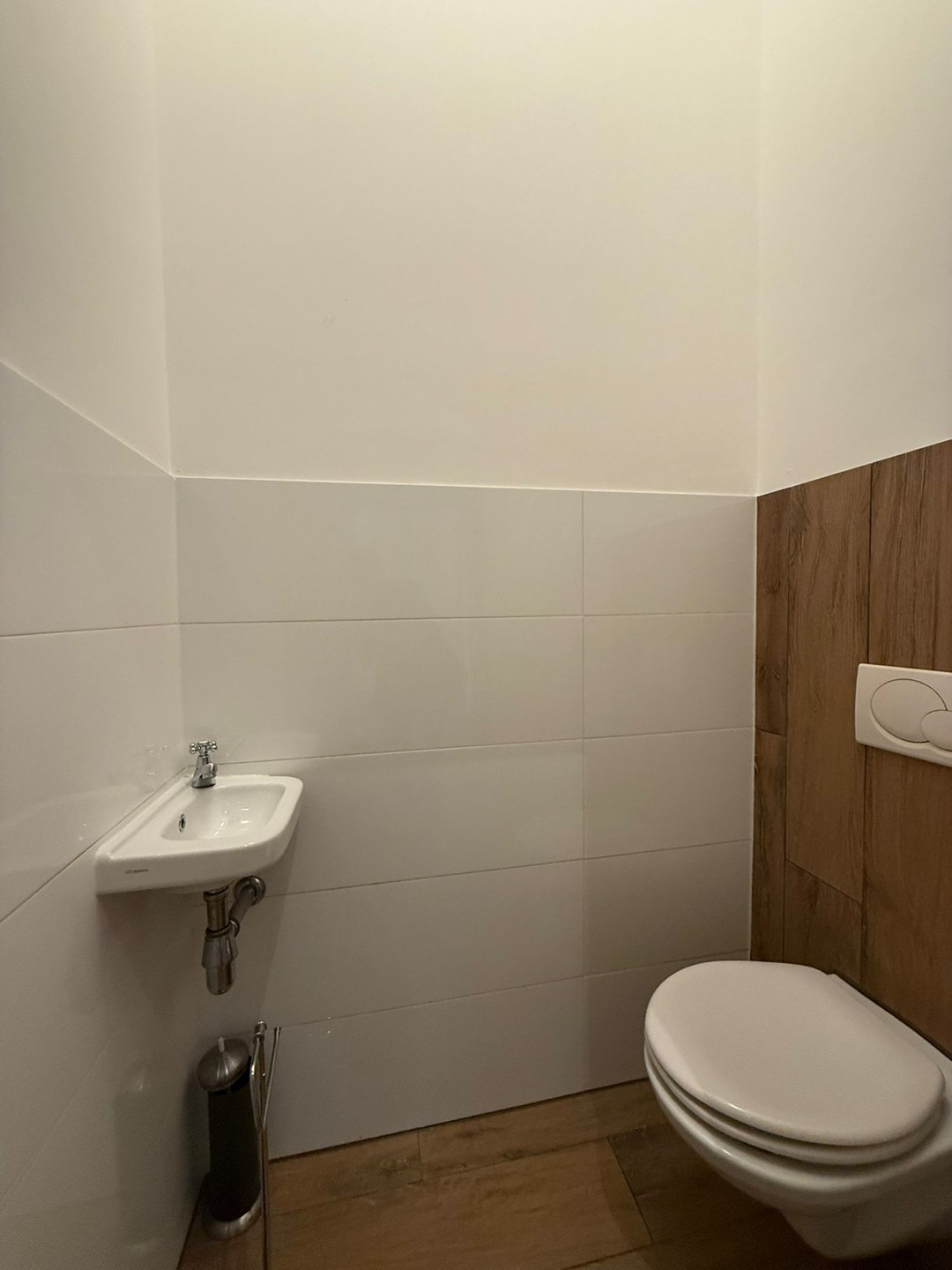 Badkamer: Voorzien van een ruime douche, wastafel en een apart toilet.