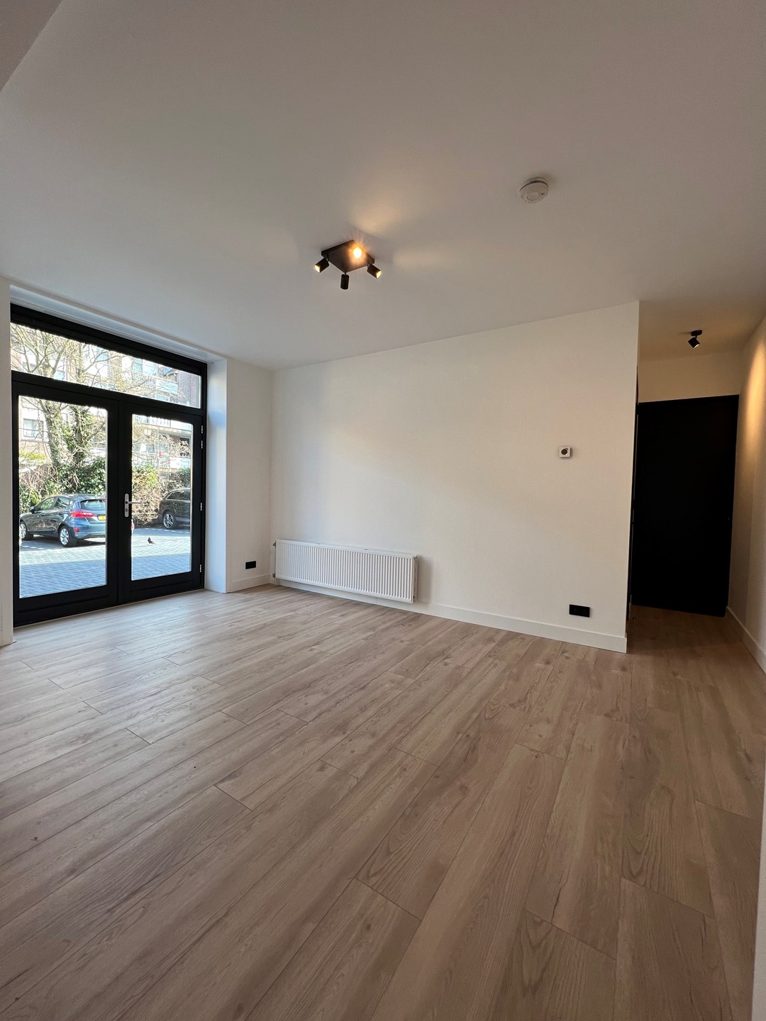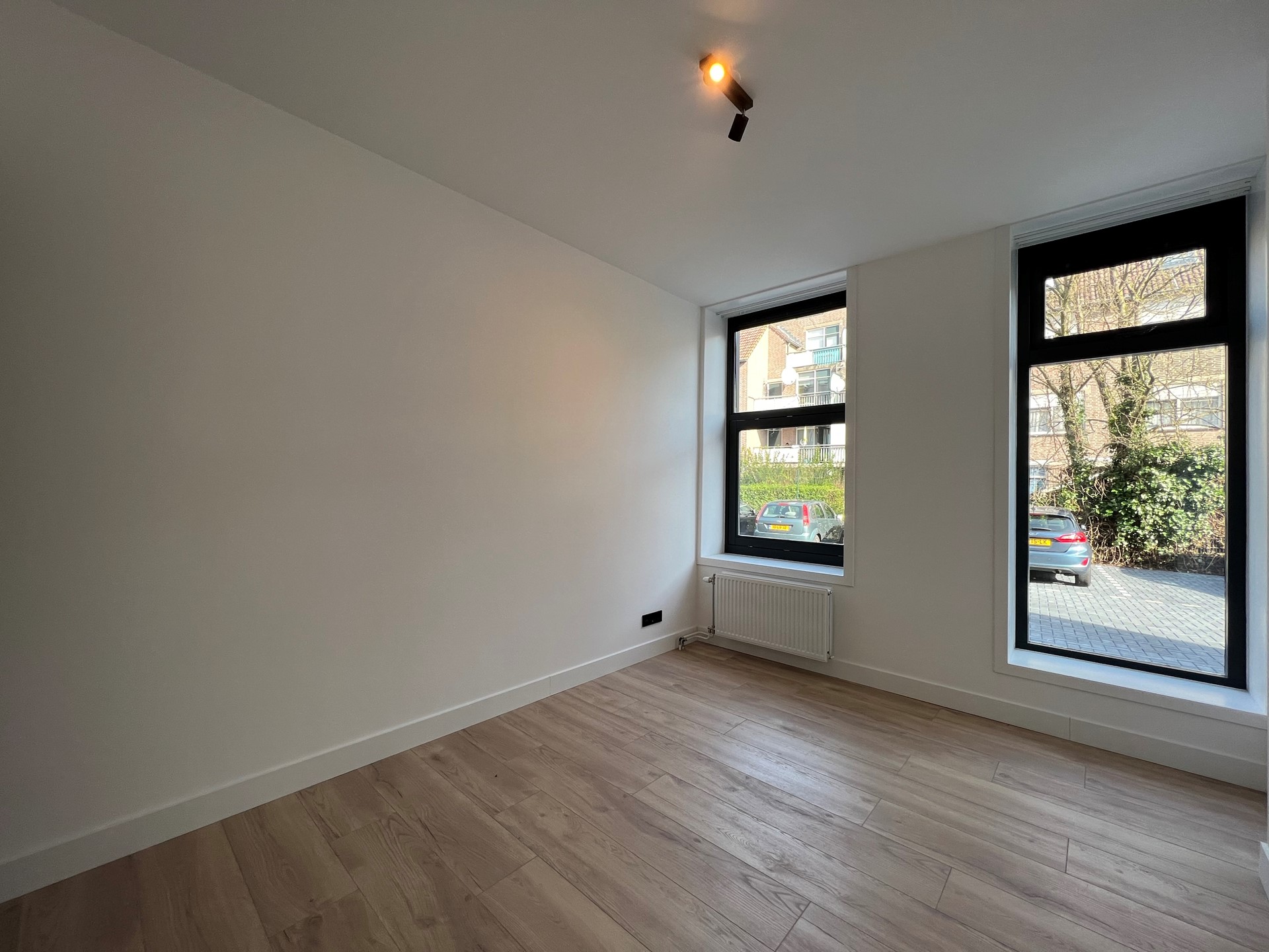 Ruime en lichte woonkamer, slaapkamer en badkamer zijn aan de achterzijde van de woning te vinden.