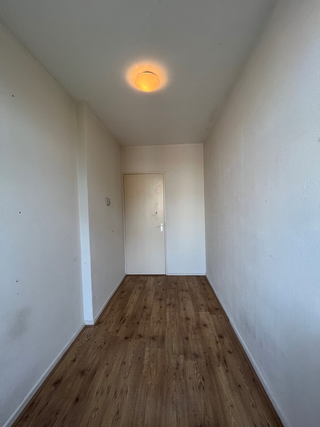 De slaapkamer is via de woonkamer te bereiken en ligt aan de achterzijde van het appartement.