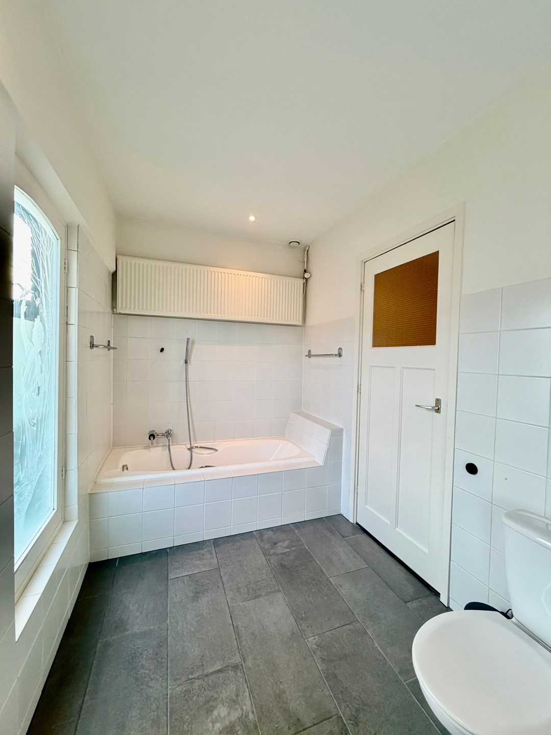 Ruime hal die toegang biedt tot de diverse vertrekken en trap naar de bovenverdiepingen. Separaat toilet en handige inbouwkast voor garderobe.